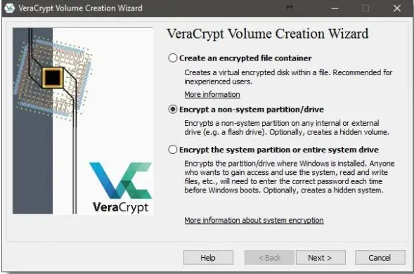 2) Since you are encrypting an external drive, make sure that “Encrypt a non-system partition/drive” is selected, and click on Next.