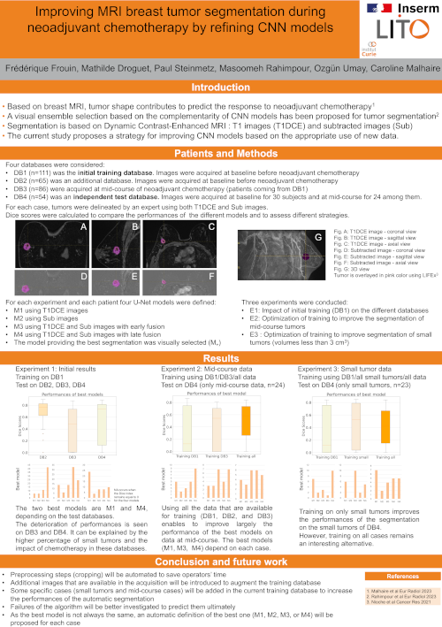 Personnes impliquées au laboratoire : Fanny Orlhac, Irène Buvat, Frédérique Frouin, Christophe Nioche, Thibault Escobar (doctorant), Hamid Mammar, Laurence Champion, Romain-David Seban, Claire Provost.